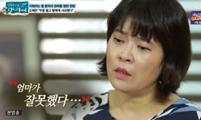 조혜련은 방송에 출연해 자신의 이혼으로 딸이 받은 상처를 얘기했습니다.