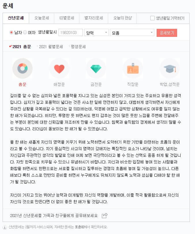 그래서 오늘은 2021년 무료 신년 운세 그리고 토정비결 볼 수 있는 곳을 알려드리려고 합니다.