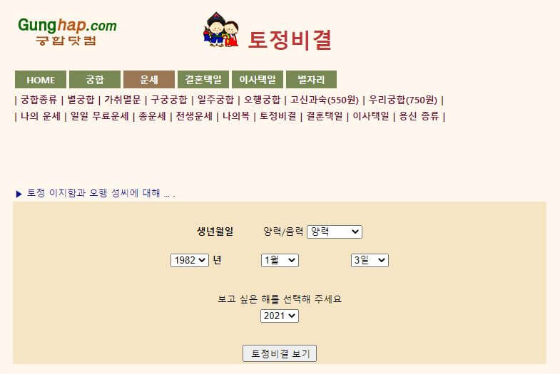 궁합닷컴에서 무료 토정비결을 볼 수 있습니다.